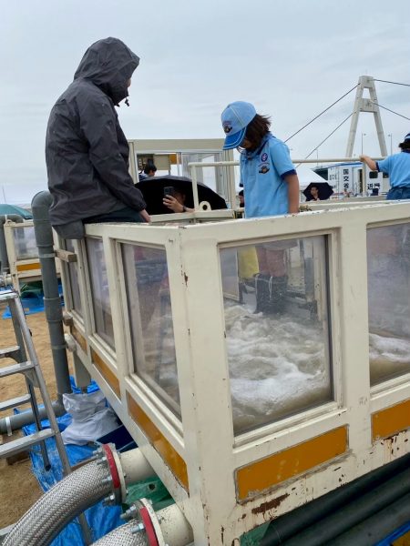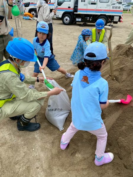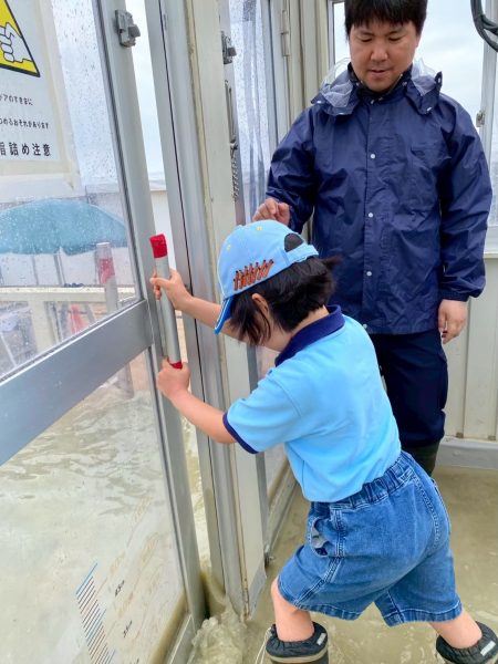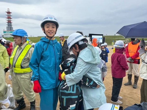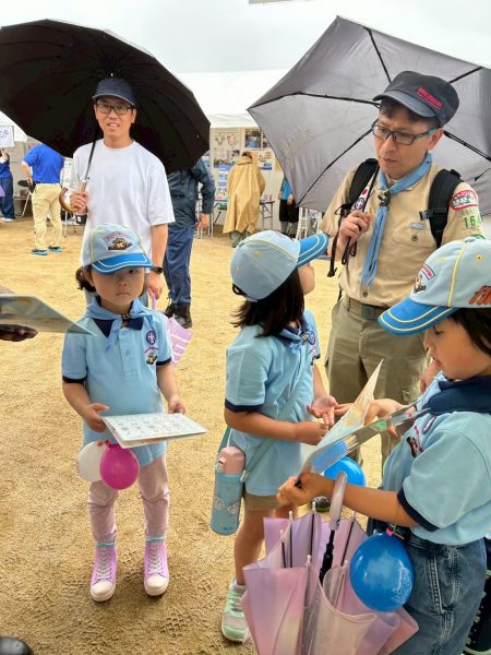 水の中をスカウトは長靴をかりて歩きましたが、下が見えない、滑る、危ないといった事を体験する事で、災害時の怖さを少し学ぶことができました。