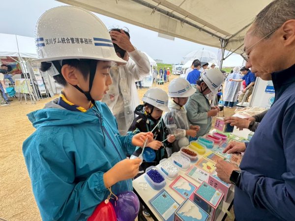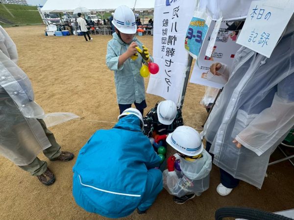 生憎の天候でしたが、展示・体験ブースで気象、災害、地図、防災に関する事をそれぞれのブースで教えていただいたり、体験をさせていただきました。