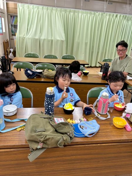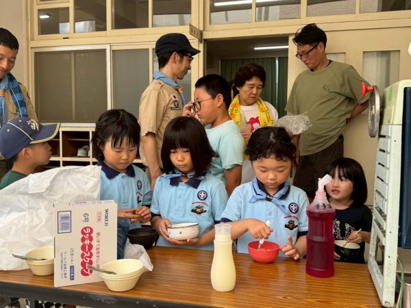 スカウトは仲間たちと協力して3つのゲームに挑み、クリアコインを獲得し、〇〇すくいやカキ氷の権利と交換します。