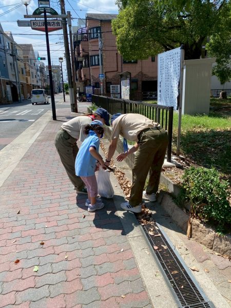 スカウト達は34度の気温の中、熱中症に気をつけながら清掃奉仕を行いました。